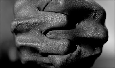 acrecienta el dramatismo. Los puños cerrados, los ojos dormidos y